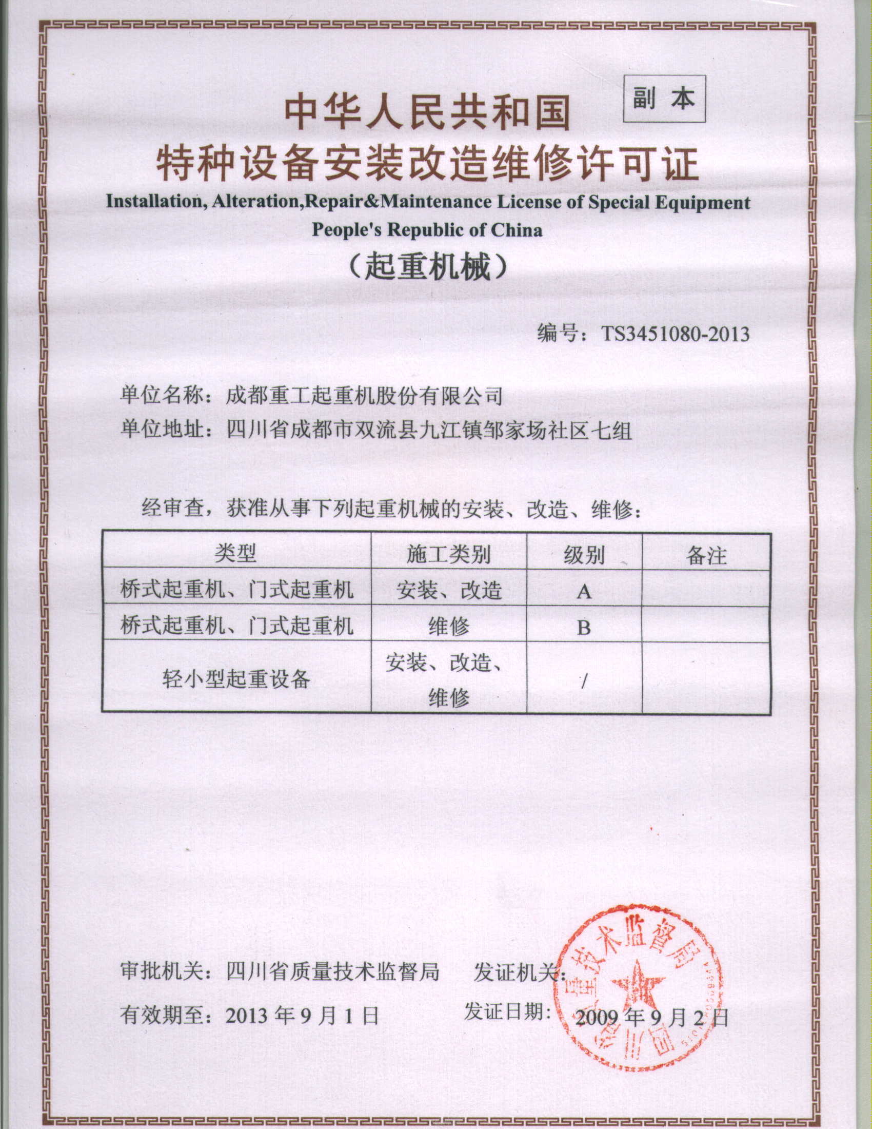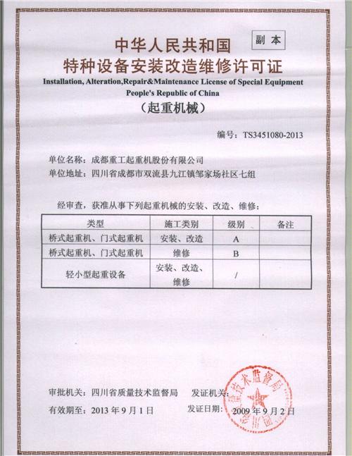 成都重工起重機股份有限公司©2012 版權(quán)所有 地址:成都市雙流西南航空港經(jīng)濟開發(fā)區(qū)空港三路903號