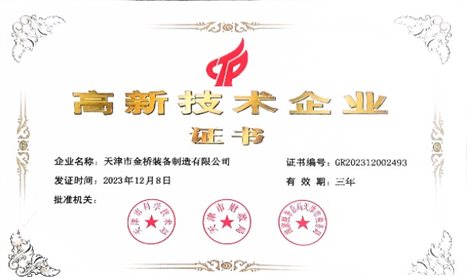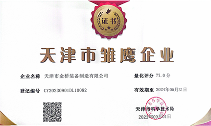 2023年,天津市金橋裝備制造有限公司自主成立申報團隊,在集團相關部門的支持下,認真解讀政策文件,及時準備各項材料,最終一次性成功通過國家科技部門認定,順利通過國家高新技術企業(yè)認定,正式邁入國家高新技術企業(yè)行列。同期成功被評定為 “2023年雛鷹企業(yè)”、“2023年科技型中小企業(yè)”。