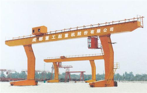 門式起重機(jī)是橋式起重機(jī)的一種變形,又叫龍門吊。主要用于室外的貨場(chǎng)、料場(chǎng)貨、散貨的裝卸作業(yè)。它的金屬結(jié)構(gòu)像門形框架,承載主梁下安裝兩條支腳,可以直接在地面的軌道上行走,主梁兩端可以具有外伸懸臂梁。門式起重機(jī)具有場(chǎng)地利用率高、作業(yè)范圍大、適應(yīng)面廣、通用性強(qiáng)等特點(diǎn),在港口貨場(chǎng)得到廣泛使用。