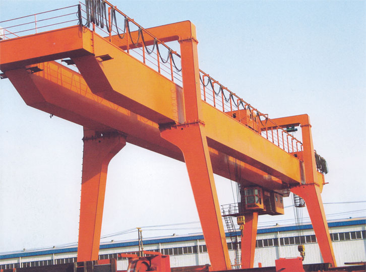 雙主梁門式起重機承載能力強,跨度大、整體穩(wěn)定性好,品種多,但自身質(zhì)量與相同起重量的單主梁門式起重機相比要大些,造價也較高。根據(jù)主梁結(jié)構(gòu)不同,又可分為箱形梁和桁架兩種形式。一般多采用箱形結(jié)構(gòu)。